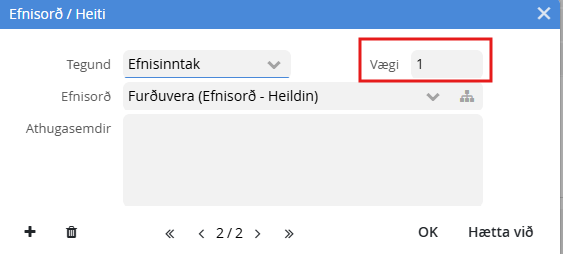 Þessi reitur finnst undir flipanum Ítarupplýsingar í ákveðnum aðfangategundum.